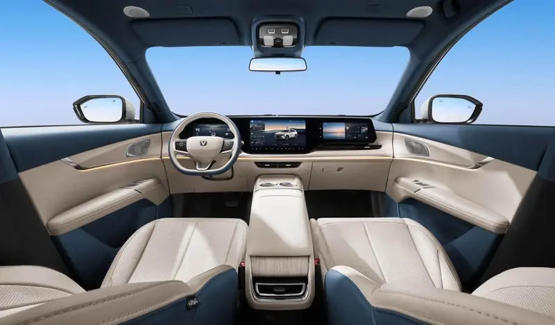 开出去有面子,停下来有里子。新车采用长安汽车最新“纵横万象”设计美学,前脸搭载同级最宽V形格栅,气场沉稳大气;全LED都市前大灯内部集成42颗高亮LED灯珠,尽显锐意锋芒;车尾通过破风尾翼和宽基座设计,构建起磐石般稳固的视觉支撑;车身提供安第斯灰、原子灰、尊贵黑、炫晶白、碧空蓝、星云辉、月华银灰7种配色。内饰方面,甄选NAPPA细皮纹理皮革,搭配浅色木纹膜片,触感细腻温润;256色环抱式拾光氛围灯全长3566mm,烘托出行氛围感。此外,内饰提供幕夜黑、热浪橙、慕雪青山三款主题色可选。